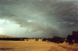 About half an hour later of driving it was evident we were  right cause there was nothing to the north. We phoned Jacob for an update and he told us there was a cell inland near Dalwallinu showing green. Although this is like 300ks away I thought by the time we cut across inland we might be able to cut it off. The stuff we drove past earlier was too far away now and we had no hope of catching up with it. So for about the next 1 1/2hrs we had to play catch up. The first time we got a look at the cell it was well south of Dalwallinu and it did look good. It had a suspicious lowering that we stopped to photograph, we couldnt see the whole cell at this stage and it turned out to be along the gust front. At this stage we couldn't see the whole cell. It took a while to get into position as the storm was moving in from our left fast. We came out on a road and I just kept going forward until we were right alongside where the guster would pass. We got out and got some great pics and footage of it. Boy it had some motion. We retreated to the cars as it went past and got some small debris as it passed. The guster winds were approx 90kph I spose. At this point the cool air really took over the cell and the rain widened out and intensified as the guster died. Nice to know we caught it at its best anyway. We tried to catch up and stay ahead of it but the storm was moving way too fast and driving was hard. Heavy rain was now falling and there was allot of debris on the road. I decided to stop as there was no point going south now. We stopped and watched another cell forming to our west and north. It had allot of scud action and some nice lowerings but never showed any rotation at all. Still we got some nice pics. The rest of the day can be summarised by saying rain, rain, more rain, ooooooo a CG!, more rain, rain, CC! etc. We did a big loop down to Toodyay where a phone call to Jacob confirmed the bad news. Basically it had just turned into a big rain band. We headed home via Northam after covering about 350k's. The day did have good shear but what killed it was too much moisture. When there is like 7/8's mid level cloud cover at 10:30am it doesn't give the sun much of a chance to break through and get any decent convection going. AVN was all over the place with this trough but the telling sign pointed out to me by Ben Quinn was the rain fall charts. Its a good tip too, cause it was saying there would be allot of widespread rain for inland. Which is what happened. Next time ill be having a peak at it along with all the usual CAPE, LI's and that.